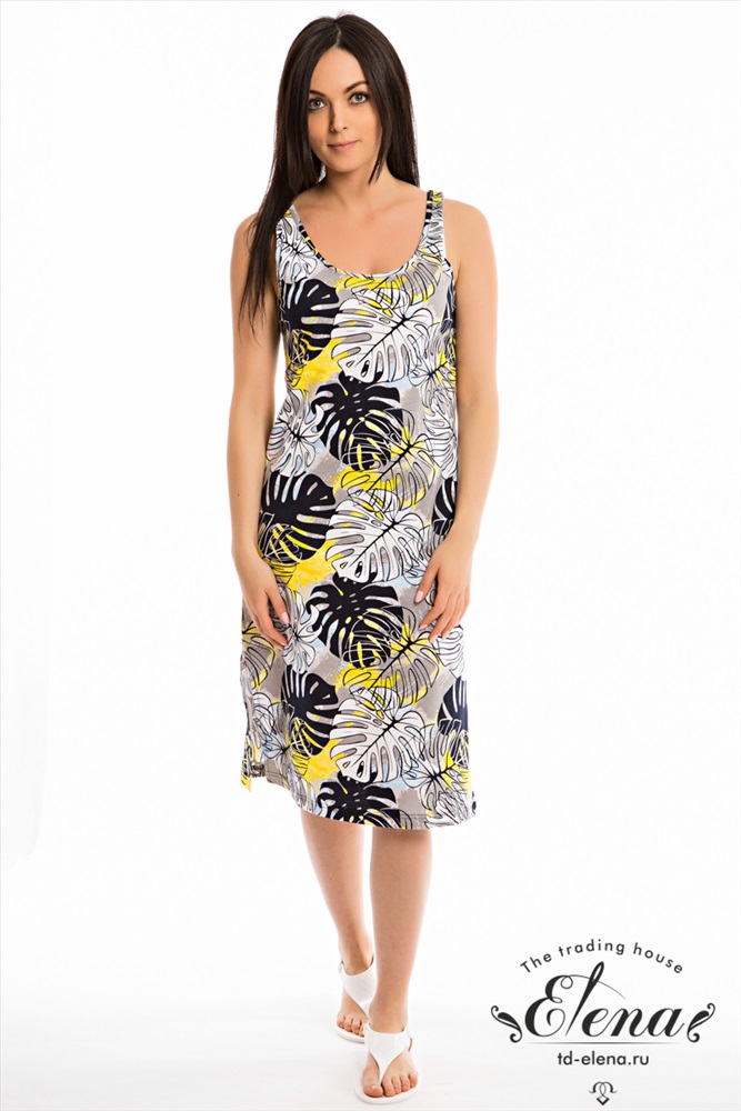 Тип длинны (для платьев): До колена Вид ткани: Кулирка Сезон: Летний Состав: Хлопок 100% Цвет Номенклатуры: серый Сарафан выполнен из кулирки. Круглый вырез горловины и проймы обработаны бейкой. Длина ниже колен, по бокам разрезы. Комментарии к товару