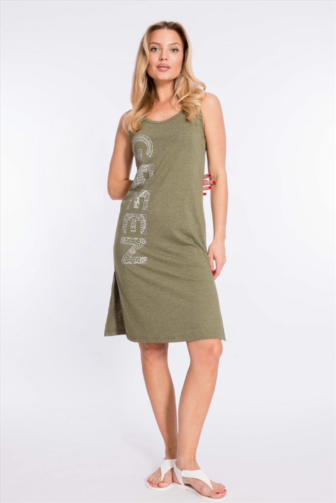 Силуэт (для платьев): Прямой Тип длинны (для платьев): До колена Вид ткани: Кулирка Сезон: Летний Состав: Хлопок 100% Цвет Номенклатуры: хаки