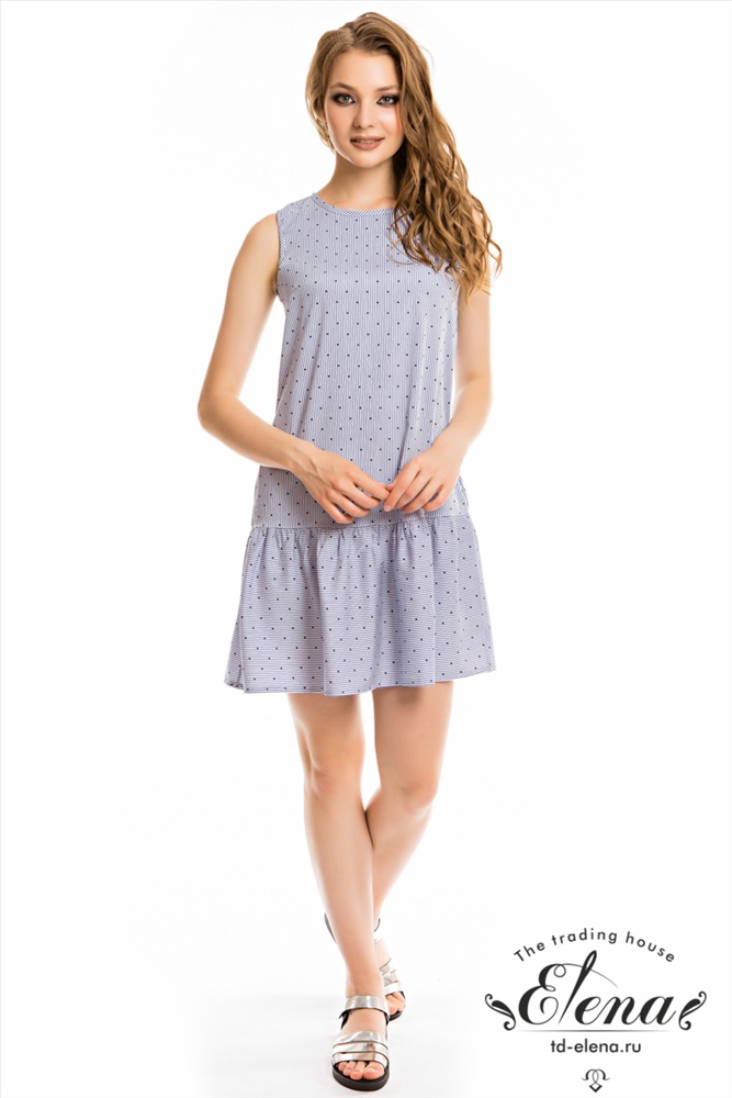 Цвет Номенклатуры: голубой Сарафан свободного силуэта с отрезным воланом. Горловина обработана бейкой, свободные концы завязываются на спинке. По бокам расположены карманы. Сарафан выполнен из хлопкового полотна с добавлением лайкры.