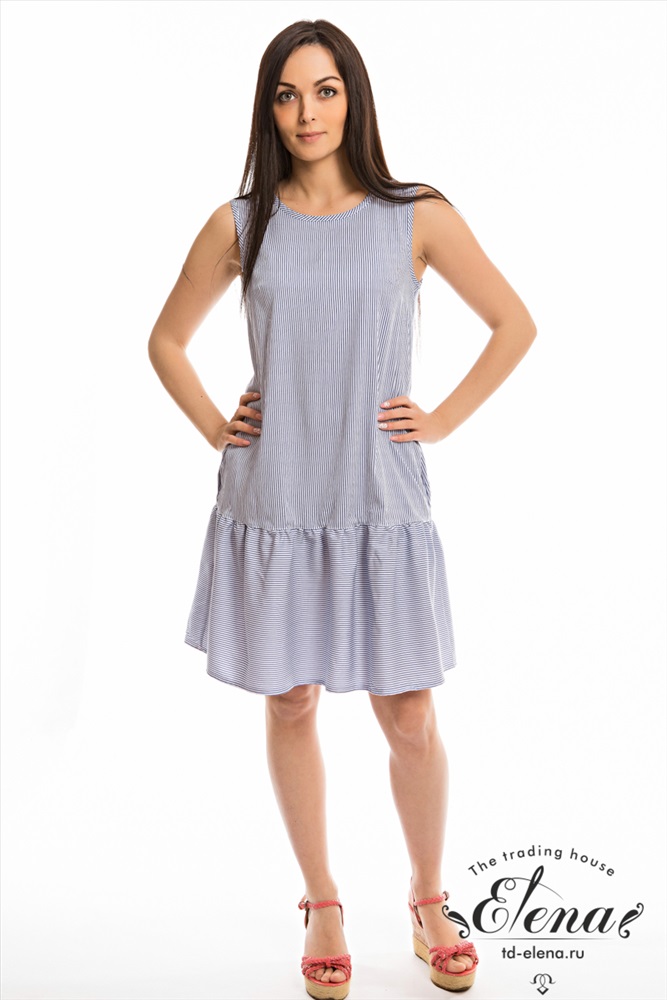 Тип длинны (для платьев): До колена Вид ткани: Кулирка с лайкрой Сезон: Летний Состав: Хлопок 95% Лайкра 5% Цвет Номенклатуры: голубой Сарафан свободного силуэта с отрезным воланом. Горловина обработана бейкой, свободные концы завязываются на спинке. По бокам расположены карманы. Сарафан выполнен из хлопкового полотна с добавлением лайкры. Комментарии к товару