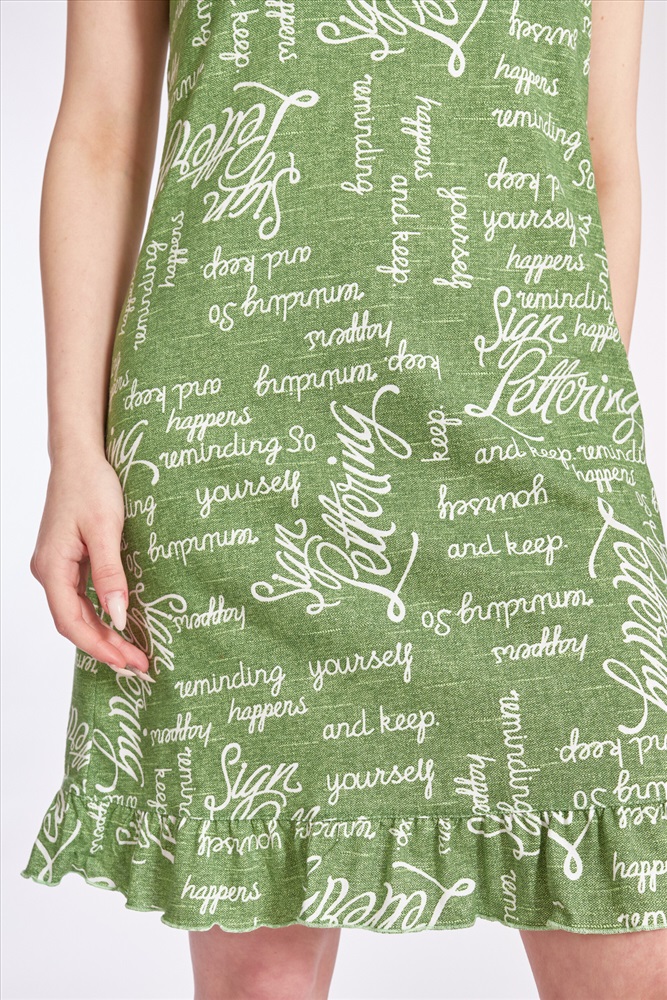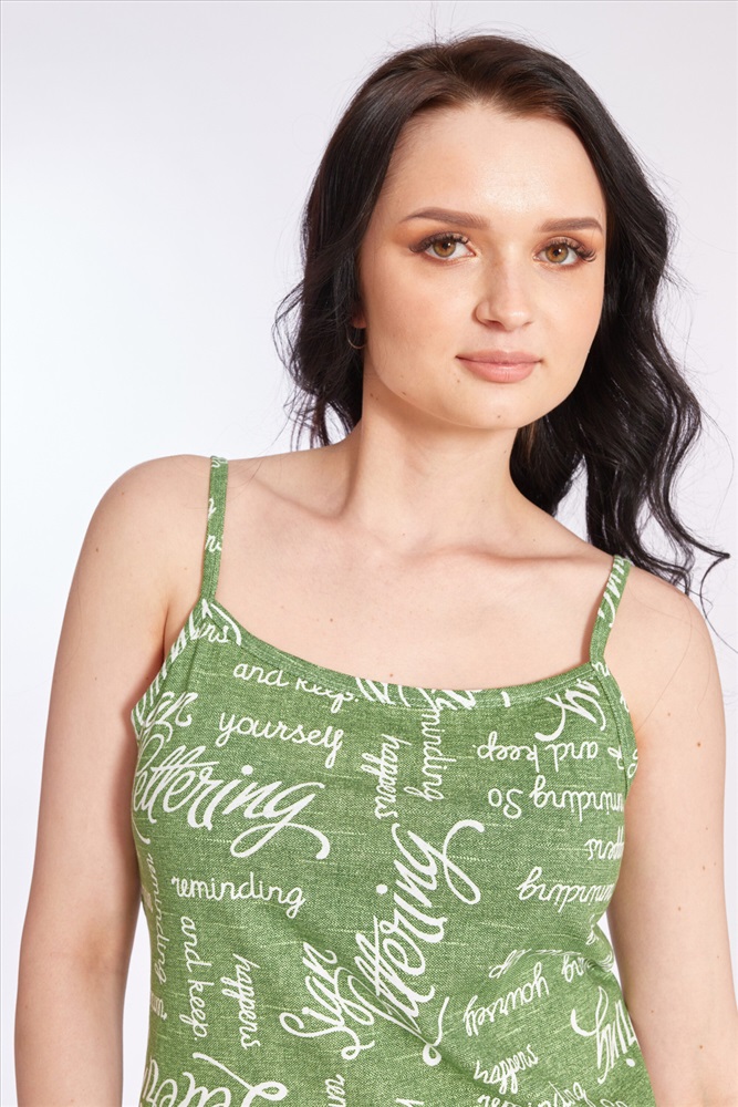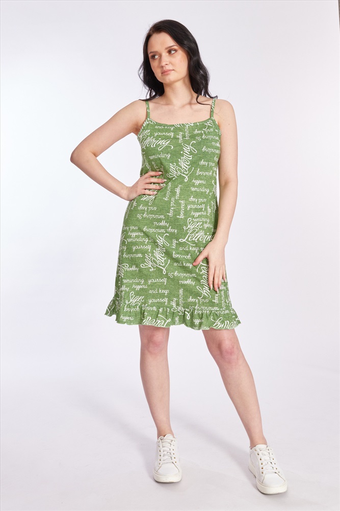 Цвет Номенклатуры: зеленый Сарафан из кулирки, 100% хлопок. На тонких бретелях и с оборкой по низу.