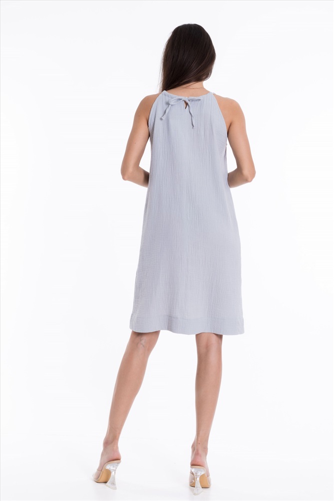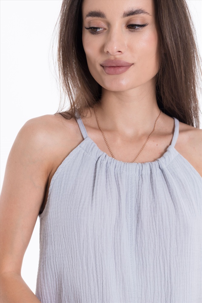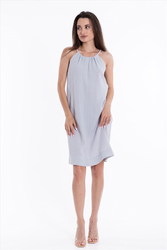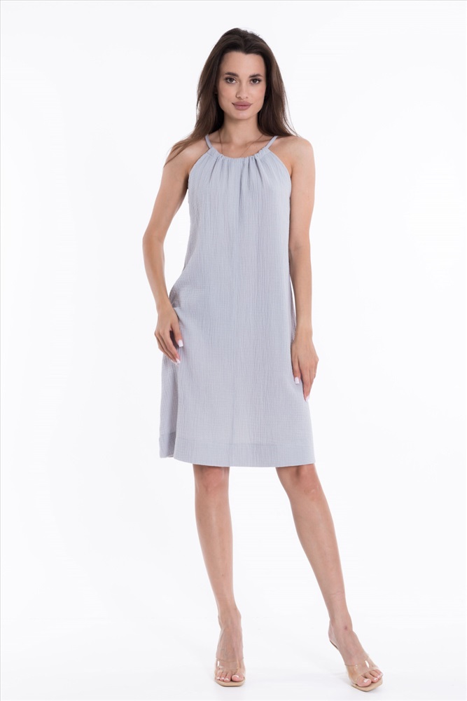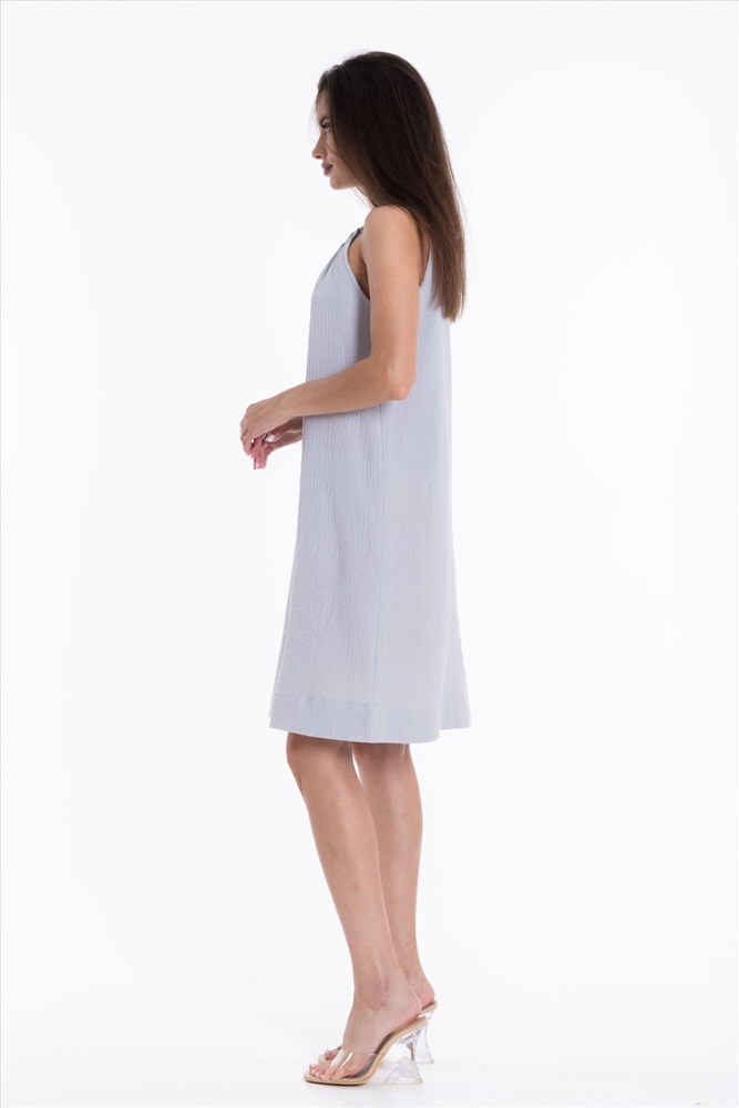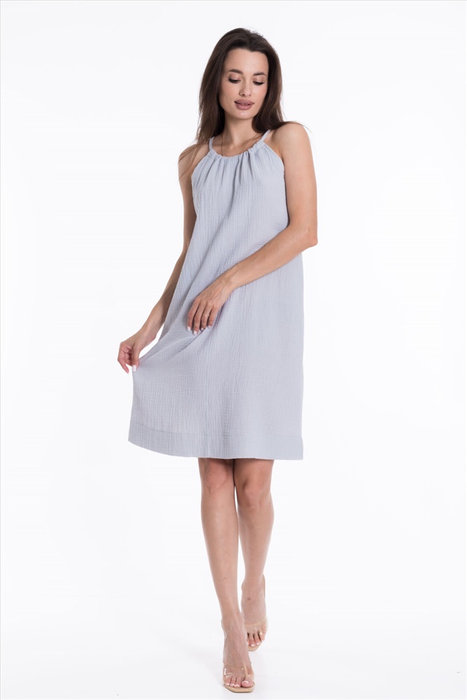 Силуэт (для платьев): Прямой Тип длинны (для платьев): До колена Вид ткани: Муслин Сезон: Летний Состав: Хлопок 100% Цвет Номенклатуры: голубой