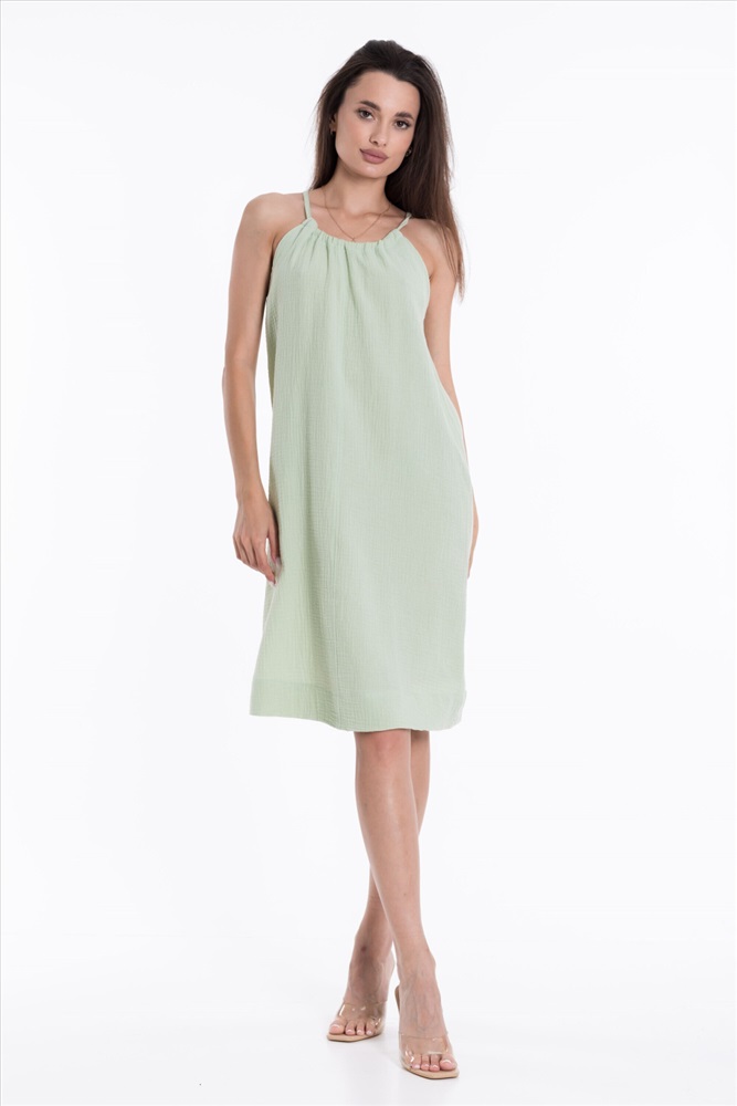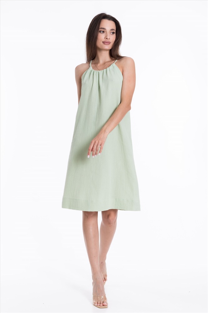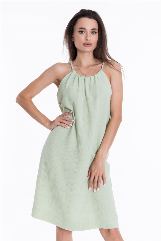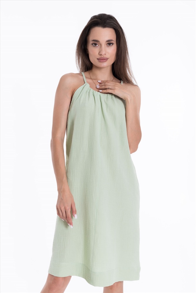 Силуэт (для платьев): Прямой Тип длинны (для платьев): До колена Вид ткани: Муслин Сезон: Летний Состав: Хлопок 100% Цвет Номенклатуры: полынь