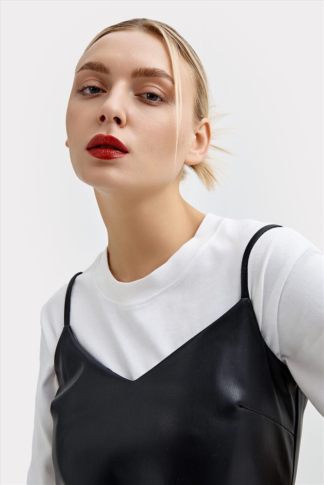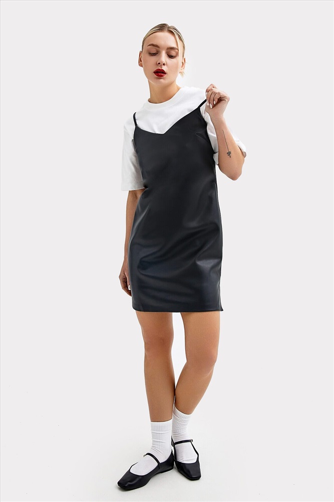 ID товара: 971106 Состав: верх- 50% Полиэстер; 50% Полиуретан; подкладка- 100% Полиэстер Сезон: Весна/Лето Вид застежки: Без застежки Вырез горловины: V-образный Декоративные элементы: Без элементов Бретели: Тонкие бретели Покрой: полуприлегающий Уход: Деликатная стирка при 30 градусах Фактура материала: Иск кожа Страна бренда: Беларусь Страна производства: Белоруссия Сарафан женский прямого силуэта из трикотажного полотна "под кожу" 50% полиэстр, 50% полиуретан, 355гр., 137см. Pu-7, Pu-117.01.355. и ткани подкладочной 100% полиэстр, 56гр., 151см. Tpes-21, Tpes-006.01.60 Горловина V-образной формы, на тонких бретелях. Бретель с регулировкой, кольца регуляторы ARTA. Регулятор H810G, 9,8*3,7мм/ кольцо H010, 10,0*12,8мм. Срез горловины и проймы обработаны подкладкой. Спинка с центральным швом. На передней детали обработаны вытачки на грудь. В боковых швах по низу обработаны разрезы. Комментарии к товару