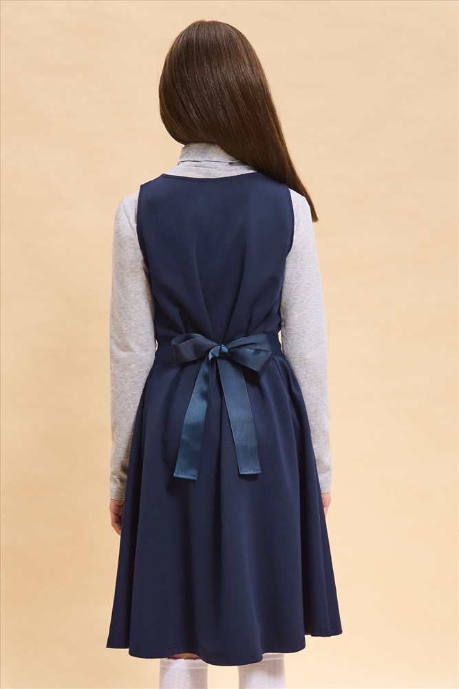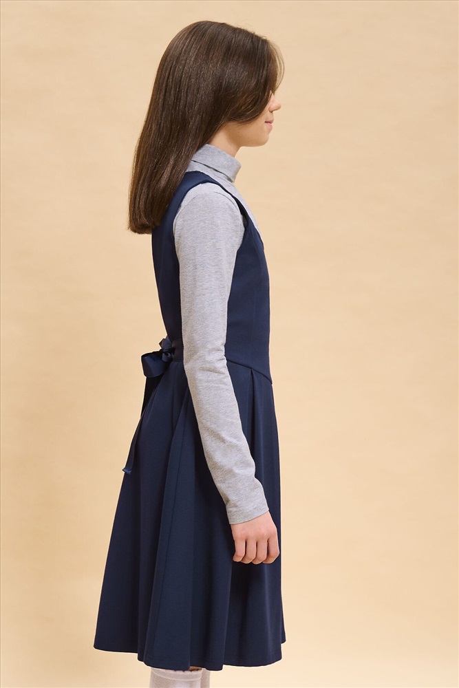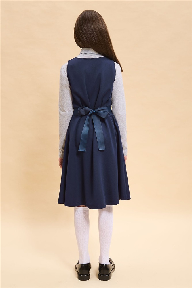 ID товара: 987383 Состав: 60% Вискоза, 35% Полиамид, 5% Эластан Сезон: Демисезон Длина: До колена Фасон: Приталенное Рукав: без рукавов Вырез горловины: Округлый Декоративные элементы: Завязка бант Основная ткань: Вискоза Стиль: Деловой стиль Страна бренда: Россия Страна производства: Китай Школьный сарафан для маленьких принцесс. Изделие с округлым вырезом без застежки легко надевать и снимать, что так ценят самостоятельные леди. Завязка на бант из репсовой ленты сзади позволяет регулировать ширину и выбирать, что надеть под платье плотную водолазку или легкую блузу для торжественных случаев. Универсальные цвета не требуют частой стирки, а трикотаж на основе вискозы, обеспечит долгую практичную носку и простоту ухода. Комментарии к товару