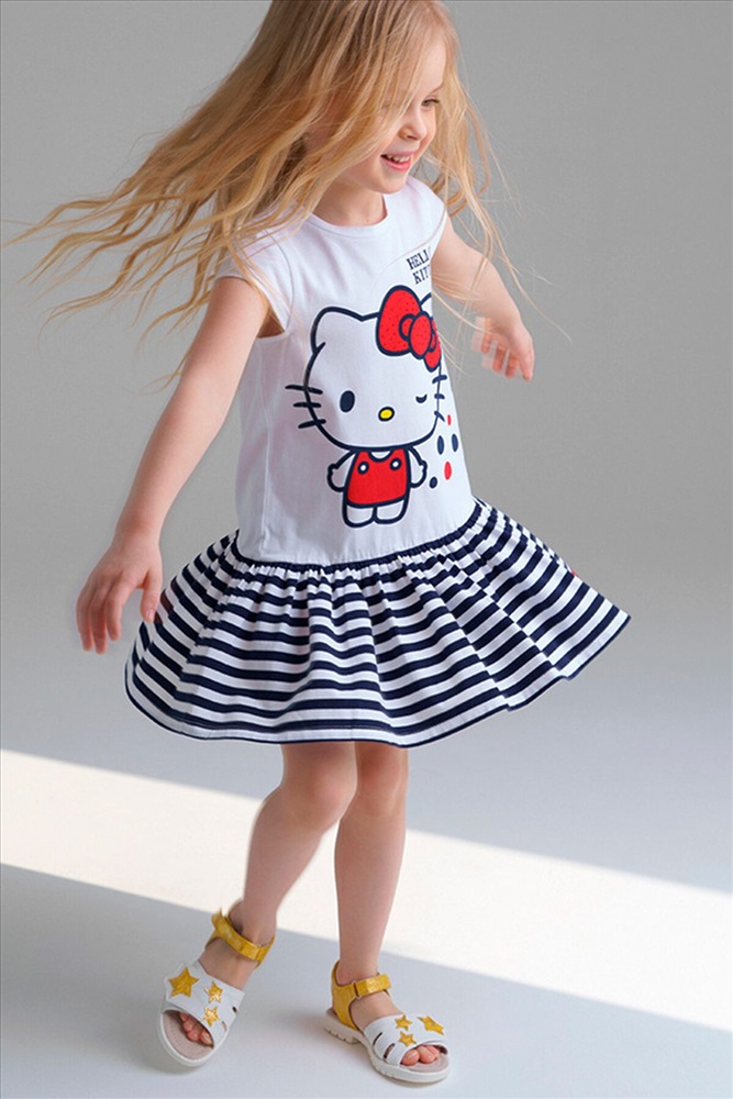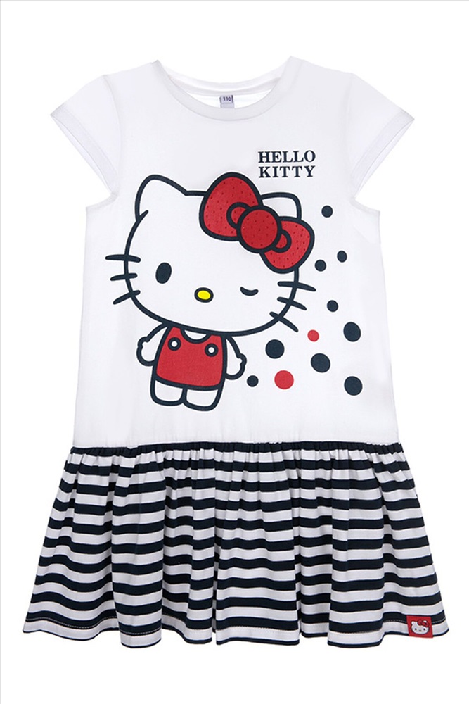 ID товара: 295968 Состав: 95% Хлопок, 5% Эластан Сезон: Весна/Лето Длина: Мини Фасон: Повседневный Рукав: Короткий Вырез горловины: Круглый Рисунок: Фантазийный Основная ткань: Хлопок Стиль: Повседневный Страна бренда: Германия Страна производства: Россия Платье трикотажное с принтом Hello Kitty, высокое содержание хлопка 95%, благодаря наличию эластана в составе ткани изделие держит форму и меньше мнется. Комментарии к товару