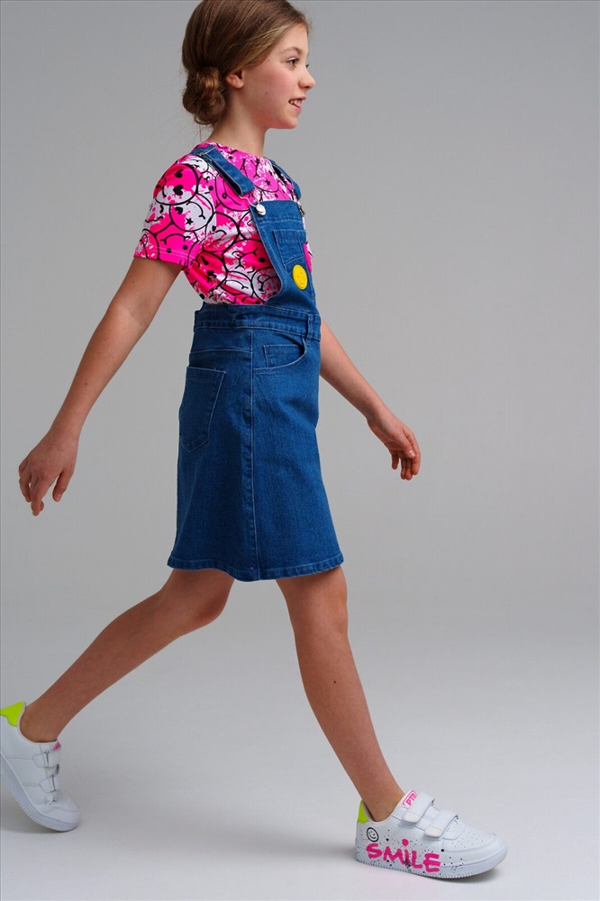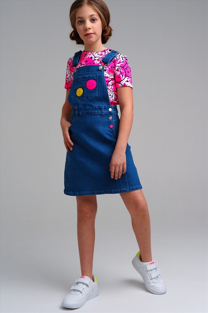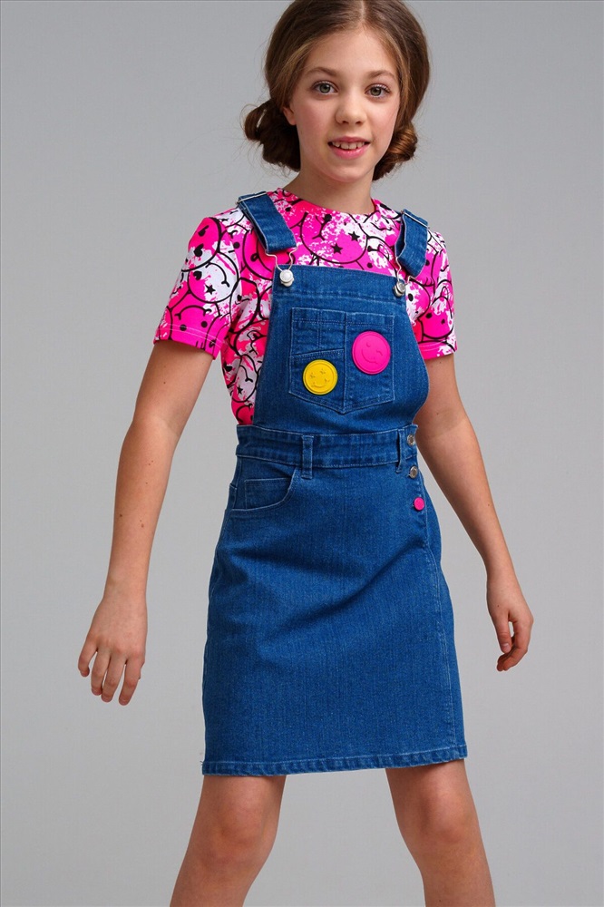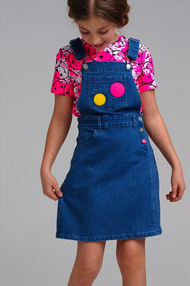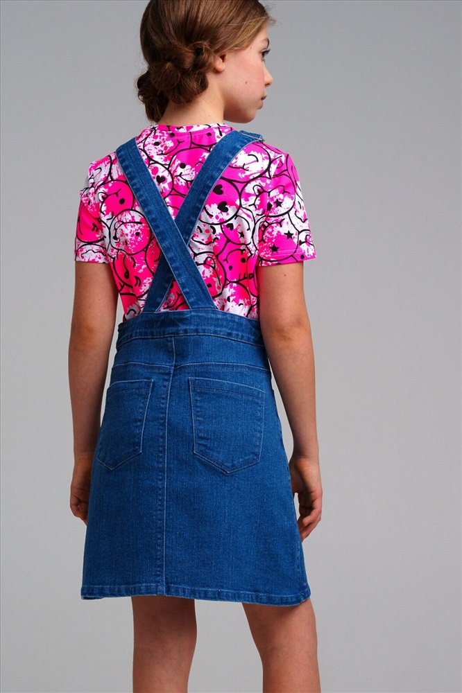 Сарафан джинсовый для девочки. Пояс на резинке с утяжкой, застежка на пуговицы.