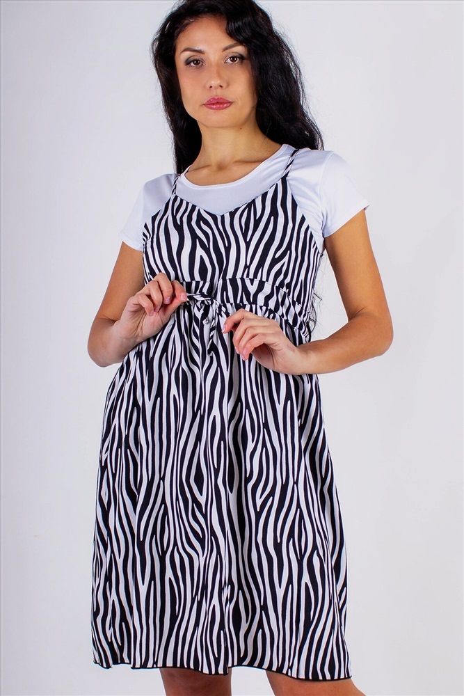 Производитель: НАТАЛИ ID товара: 1113938 Состав: Вискоза 100% Сезон: Весна/Лето Длина: Мини Фасон: Полуприлегающий Рукав: без рукавов Вырез горловины: На бретельках Рисунок: зебра Декоративные элементы: Принт Основная ткань: Вискоза Стиль: повседневный Вид ткани: Штапель Страна бренда: Россия Страна производства: Россия