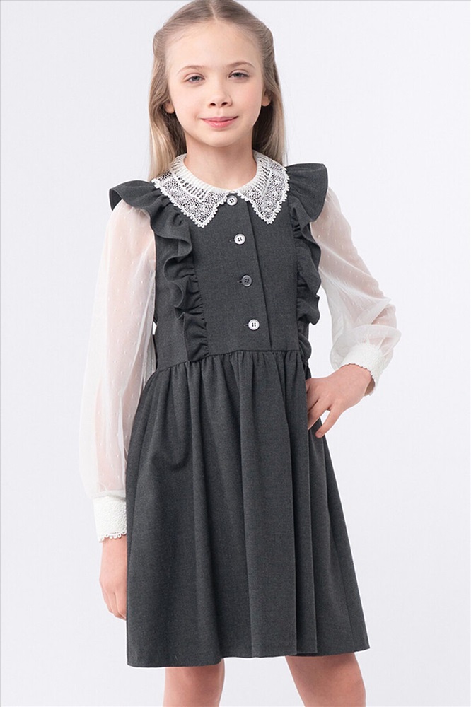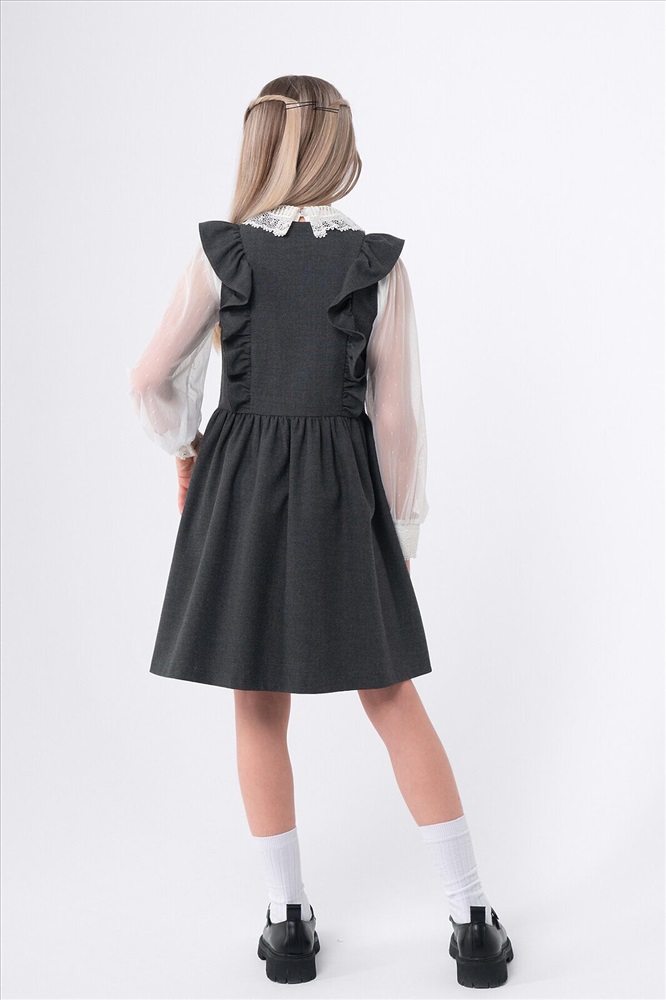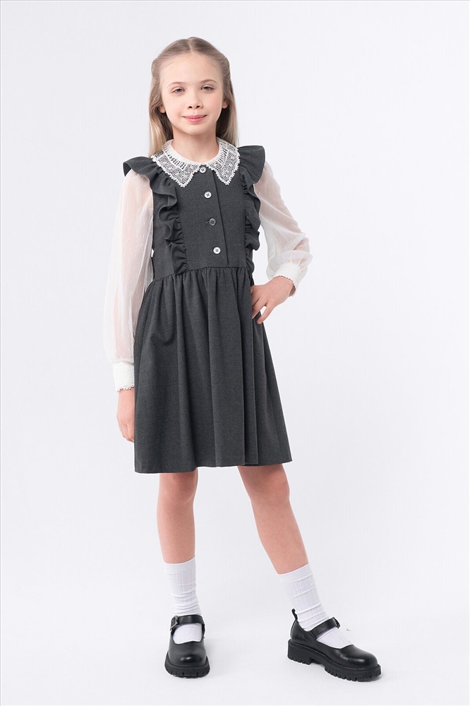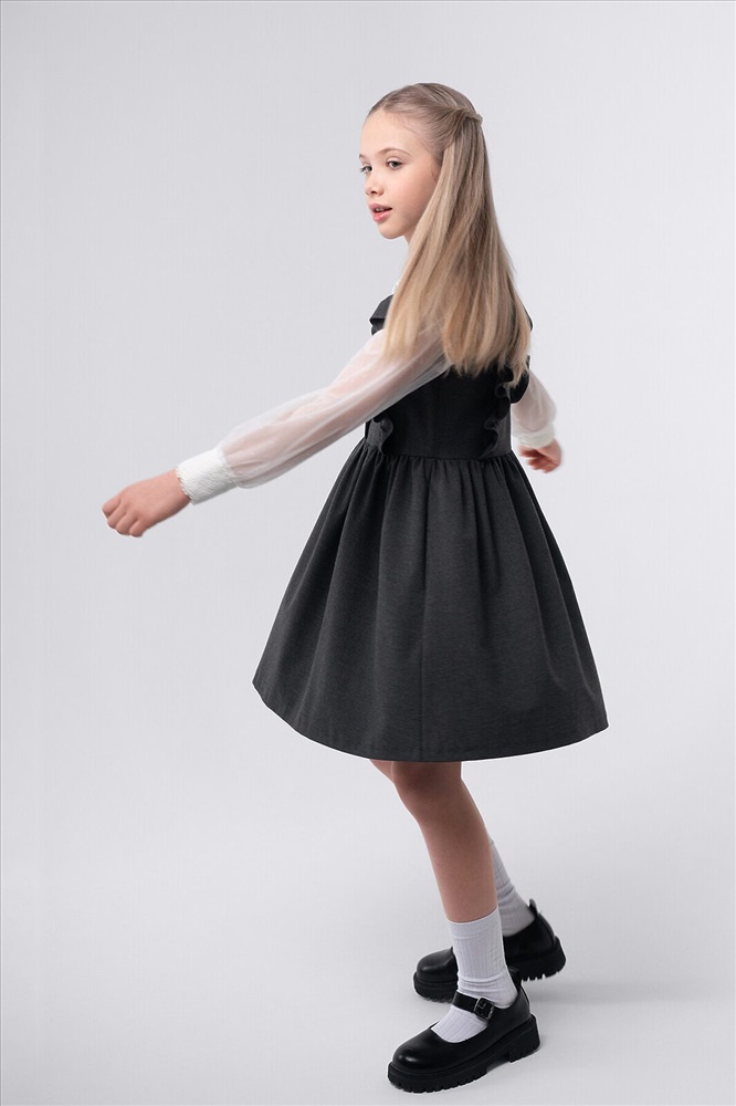 ID товара: 1127699 Акции: -5%, до 24.11.2025 Состав: 48% Вискоза, 48% Полиэстер, 4% Полиуретан Сезон: Демисезон Длина: Средняя Фасон: Расклешенное Рукав: Крылышки Вид застежки: Пуговицы Вырез горловины: Округлый Основная ткань: Вискоза Стиль: классический Страна бренда: Россия Страна производства: Россия Сарафан для девочек идеально подходит для школы, обеспечивая комфорт и стиль. Этот вариант выполнен без подкладки, что делает его легким и удобным в носке. Центральная несквозная бортовая застежка добавляет практичности, позволяя легко надевать и снимать.Особое внимание уделено рельефным швам полочек лифа, в которые вложена оборка. Это создает оригинальный и привлекательный вид, который понравится многим девочкам. Юбка собрана из двух полотнищ, что придает ей пышность и выразительность. Сборка на шве талии обеспечивает идеальную посадку, а обработанные карманы в боковых швах юбки добавляют функциональности. Это делает сарафан не только красивым, но и удобным для повседневного использования в школьной обстановке. Комментарии к товару