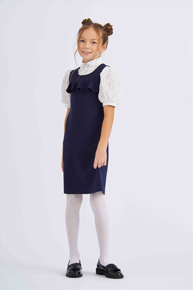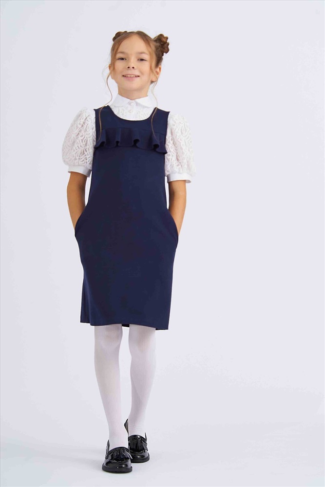 ID товара: 1221243 Акции: -5%, до 24.11.2025 Состав: 58% Вискоза, 37% Полиэстер, 5% Полиуретан Сезон: Демисезон Длина: Средняя Фасон: Полуприлегающий Рукав: Без рукавов Вырез горловины: Округлый Основная ткань: Вискоза Стиль: классический Страна бренда: Россия Страна производства: Россия Сарафан школьный. Комментарии к товару