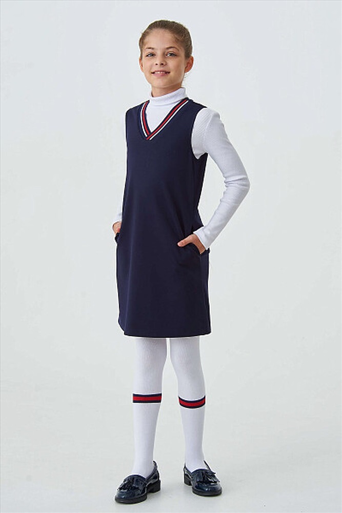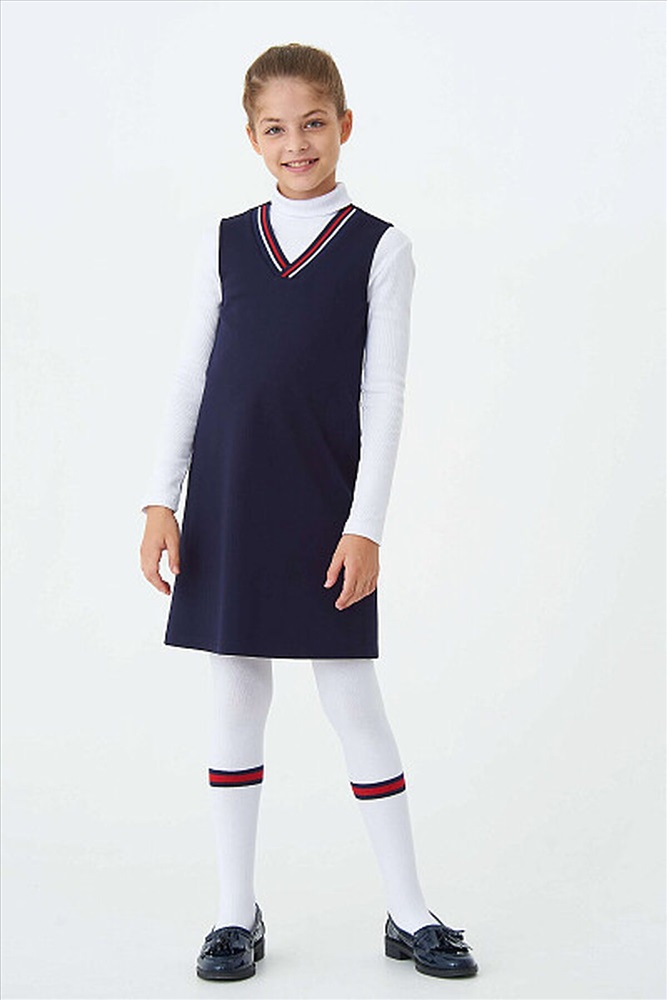 ID товара: 1221722 Акции: -5%, до 24.11.2025 Состав: 58% Вискоза, 37% Полиэстер, 5% Полиуретан Сезон: Демисезон Длина: Средняя Фасон: А-силуэт Рукав: Без рукавов Вырез горловины: V-образный Тип карманов: В шве Основная ткань: Вискоза Стиль: классический Страна бренда: Россия Страна производства: Россия Трикотажный сарафан приталенного силуэта.V-образная горловина переда выполнена с декоративным подвязом в красно-белую полоску, что позволяет надеть блузку с объёмными рюшами, жабо или брошью. В боковых швах расположены карманы. Сарафан без молний и пуговиц, что обеспечивает удобство надевания. Комментарии к товару