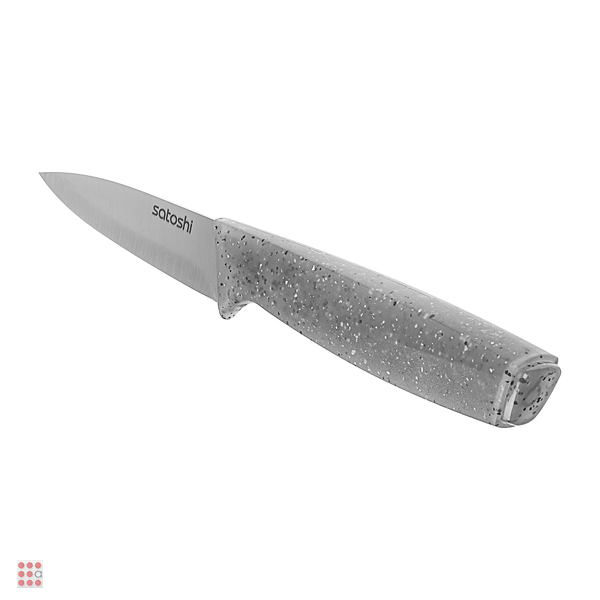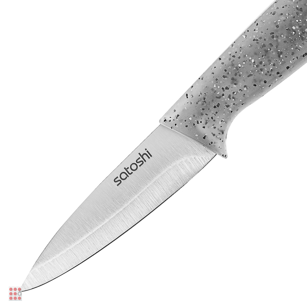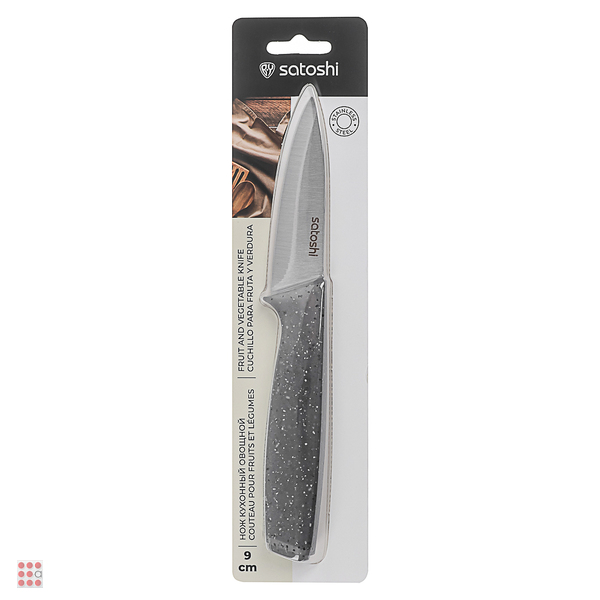 Кухонный овощной нож SATOSHI «Ивуа» с длиной лезвия 9 см удобен для нарезки овощей и фруктов, а также для чистки овощей. Также может использоваться для нарезки деликатесов. Нож маленький и удобный, комфортно ложится в руку. Имеет базовый сдержанный дизайн. Пластиковая рукоять не накапливает запахи. Острое лезвие из нержавеющей стали долго держит заточку.
