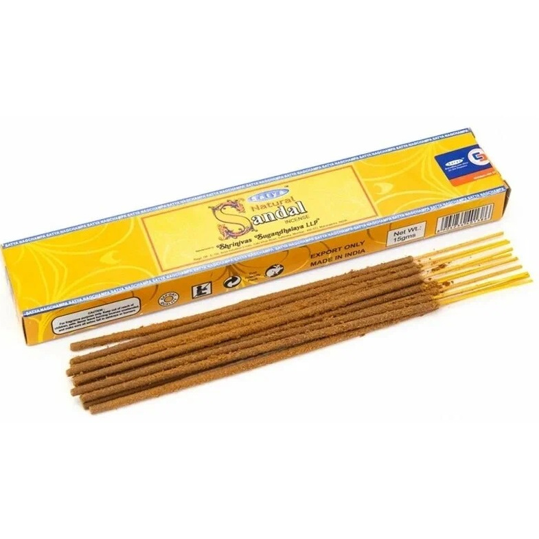 Ароматические палочки Natural Sandal (Натуральный Сандал) бренда Satya изготовлены вручную из коры сандалового дерева, растущего на юге Индии. Аромат: тонкий, изысканный, туманный, терпкий.