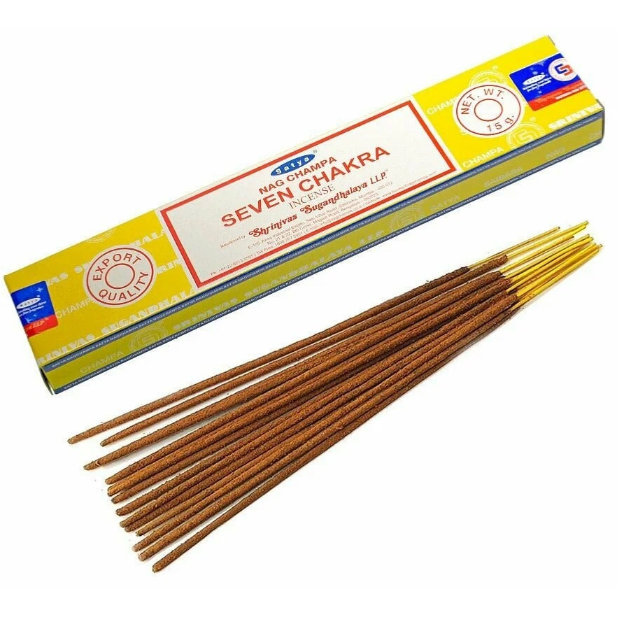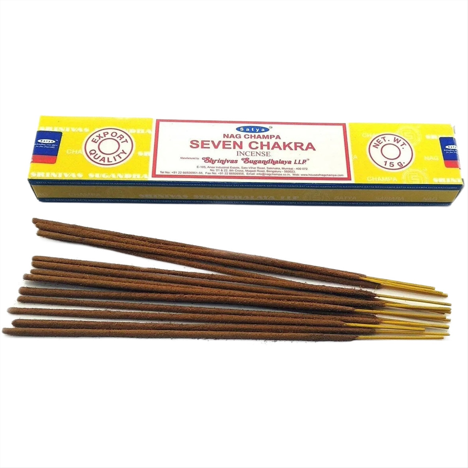 Ароматические палочки Seven Chakra от индийского производителя Satya — это микс из семи различных ароматов, которые соответствуют каждому из семи чакр человеческого тела. В состав палочек входят бамбуковая основа, порошок красного и белого сандала, камедь ладанного дерева, масла, экстракты деревьев, ароматическая эссенция цветков, специи.