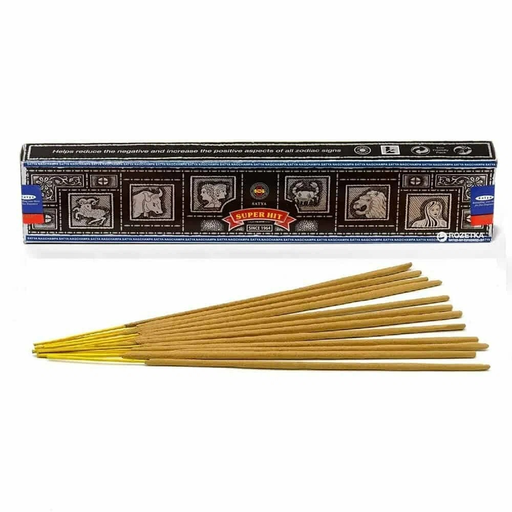 Brand: Satya Bangalore Вес/Объем/ колч: 15 г х 12 Мл/уп/г: уп. Продается как: уп. «Супер Хит» (Super Hit) — ароматические палочки от индийского бренда Satya. Изготовлены вручную по древним традиционным рецептам из смол, трав, цветочной пыльцы, специй, эфирных масел и растений. Аромат лёгкий, мягкий, ненавязчивый. В основе — белый и красный сандал, также присутствуют ноты ванили, мёда, цитрусовых. Комментарии к товару