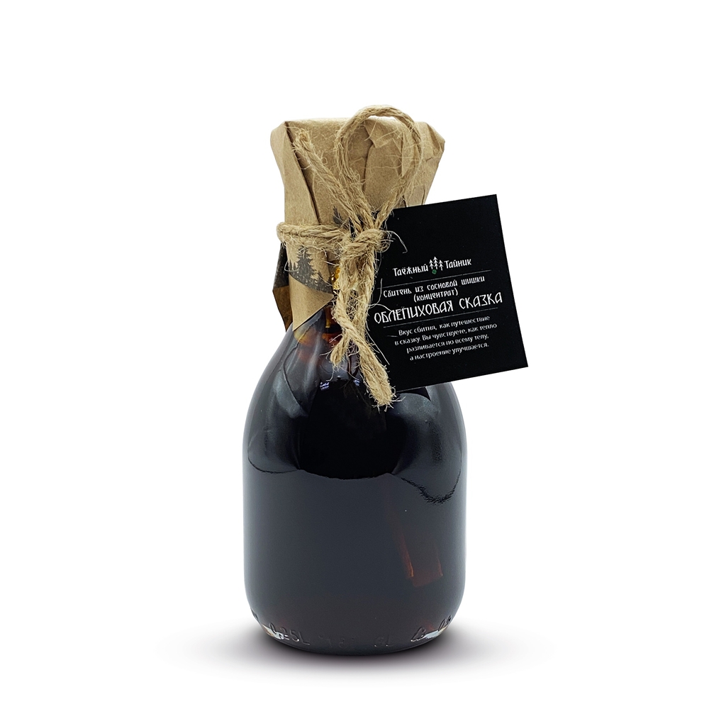 Состав: сироп из сосновых шишек (сахар,отвар сосновых шишек,лимонная кислота),сок облепихи,корица,бадьян,кардамон.