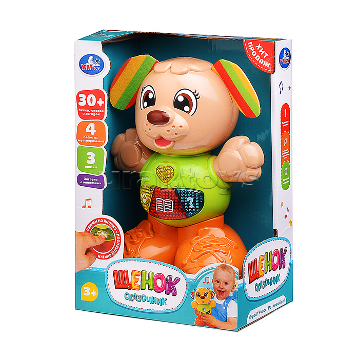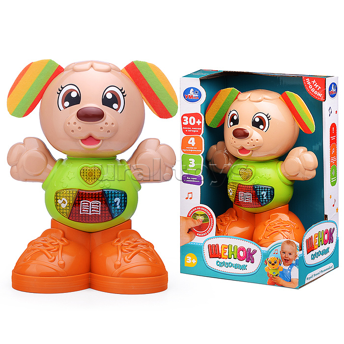 • Размеры игрушки: 15х10х21.5 см. • Работает от 3-х батареек "ААА" (входят в комплект для демонстрации) • Функции: - 4 песенки из мультфильмов. - 3 сказки. - загадки о животных. - подсветка. • Материал: пластик. • Соответствует требованиям безопасности продукции. • Для детей от 3-х лет.