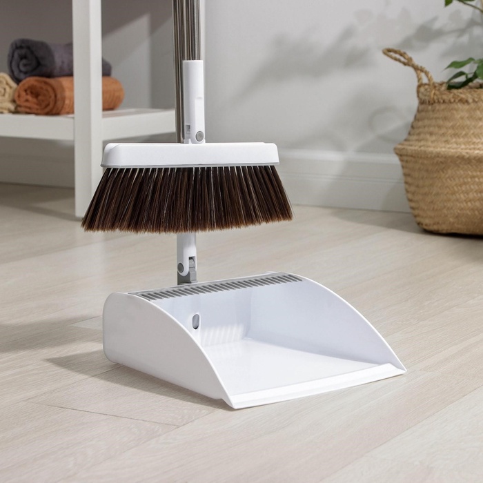 - Стильный дизайн: белый цвет щётки и совка отлично впишется в любой интерьер.