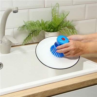 Габариты: 14,5 x 8,5 x 6 Страна: Китай В боксе: 360 шт Состав: ПВХ, пластик Материалы: ПВХ, пластик Фасовка: по 12 шт Индивидуальная упаковка: Пакет Габариты товара: 6 см × 6 см × 8,5 см Сертификат: СТР Цвет: Синий Материал: Пластик Материал колодки: Пластик Материал щетины щётки: Искусственная щетина Щётка с дозатором для моющего средства Доляна — идеальный помощник для мам и домохозяек. Благодаря удобному дозатору и мягкой щетине, она обеспечивает качественное и быстрое мытьё посуды, кухонной утвари и бытовой техники. Компактный размер позволяет использовать щётку даже в труднодоступных местах. Разнообразие цветов делает её стильным аксессуаром на кухне.