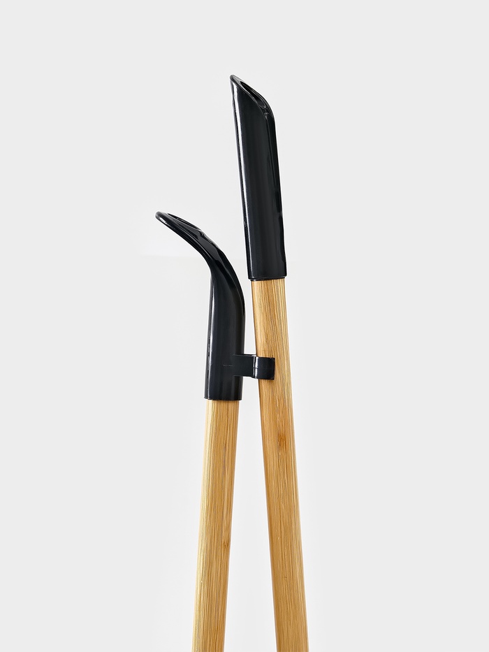 Страна: Китай В боксе: 24 набор Состав: Бамбук, пластик Материалы: бамбук, пластик Фасовка: по 1 набор Индивидуальная упаковка: Без упаковки Габариты товара: 26 см × 24 см × 98 см Сертификат: Не подлежит сертификации Цвет: Чёрный В наборе, шт.: 2 Длина ручки, см: 70, 79 Комментарии к товару