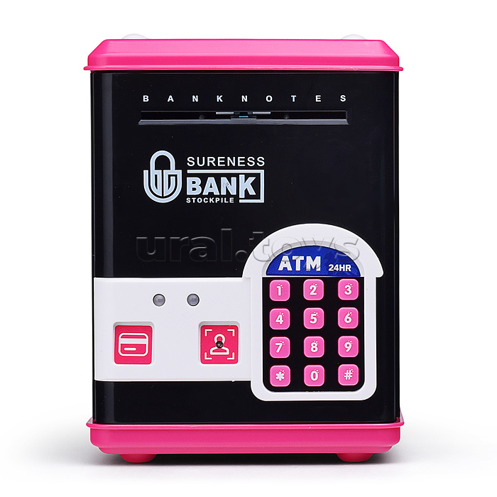 Код: 487601 Штрихкод: 6904111656061 Страна производитель: Китай Размеры упаковки: 14 x 14 x 19 см Количество в коробке: 36 • Размеры игрушки: 13 х 11 х 17 см. • Функции: - два отверстия, для банкнот и для монет. ( банкнота в комплекте). - для открытия копилки нужно ввести четырёхзначный код. - открытие копилки сопровождается забавным звуком. - возможность установить свой код. - если набрать неверный код, звучит сигнал об ошибке. • Звук работает от 3-х батареек "АА" (не входят в комплект) • Материал: пластик. • Соответствует требованиям безопасности продукции. • Для детей от 3-х лет. Комментарии к товару
