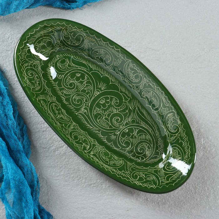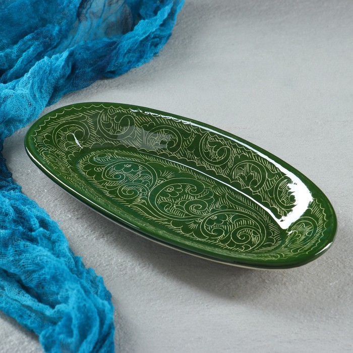 Селёдочница Риштанская Керамика, 24 см, керамика, зелёная