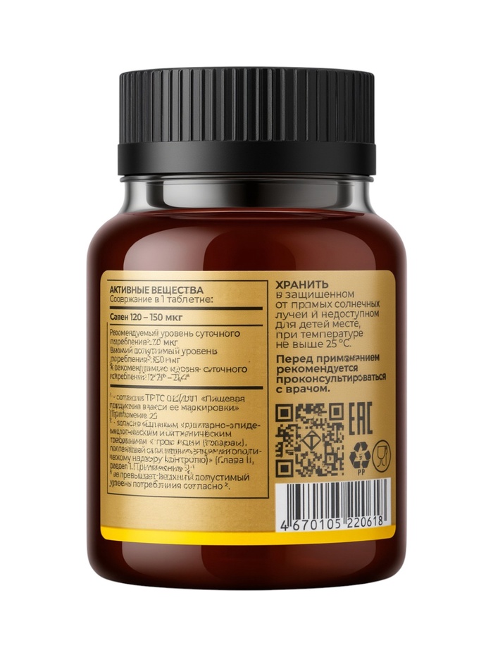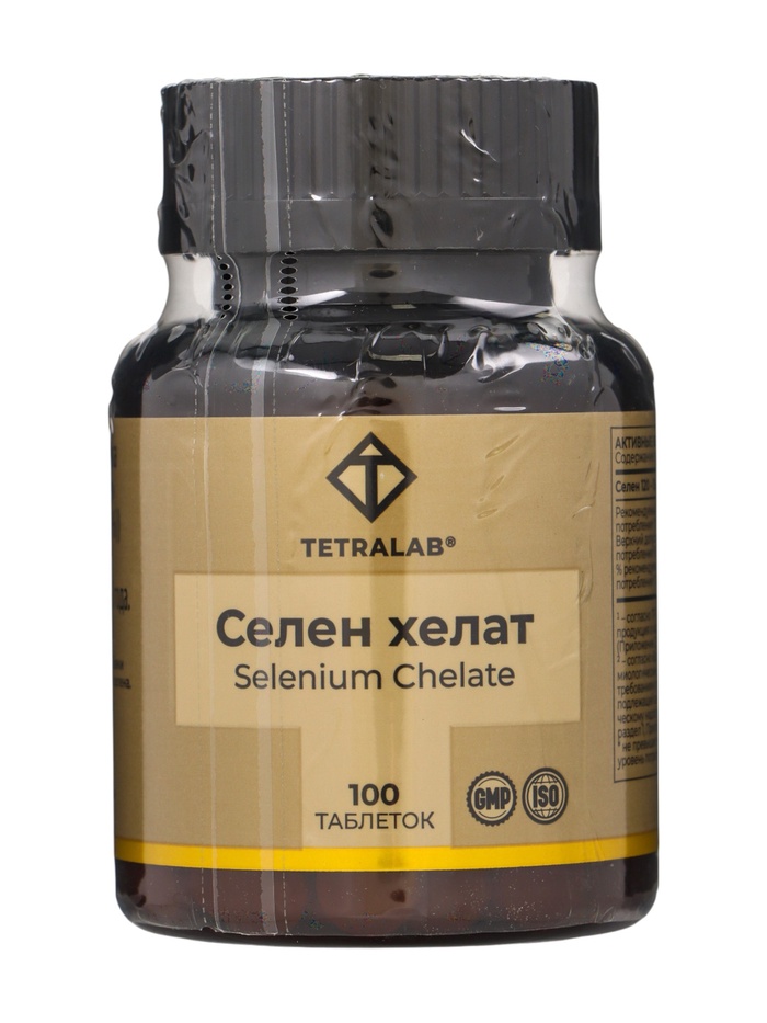 Состав (на 1 таблетку): Селен (в форме хелата) — 100 мкг, вспомогательные вещества. Способ применения: Взрослым принимать по 1 таблетке 1 раз в день во время еды, запивая водой. Курс приёма — 1–2 месяца, при необходимости можно повторить. Селен хелат TETRALAB — эффективная поддержка организма на клеточном уровне. Помогает сохранять энергию, молодость и здоровье, обеспечивая защиту от окислительного стресса и поддерживая нормальный обмен веществ. Комментарии к товару