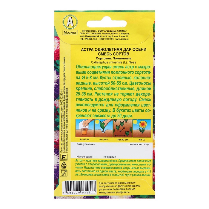 Кустовая, обильноцветущая астра с крупными махровыми соцветиями (7-9 см). Отличается ранним и продолжительным цветением с июля и до глубокой осени. Кустики плотные, высотой 50-55 см, с большим количеством крепких цветоносов. Растения устойчивы к пониженным температурам, воздействию дождя и ветра. Предпочитают солнечное местоположение. Отлично смотрятся на клумбах, в рабатках и высоких бордюрах. Хорошо подходят для срезки, соцветия долго не вянут в воде.