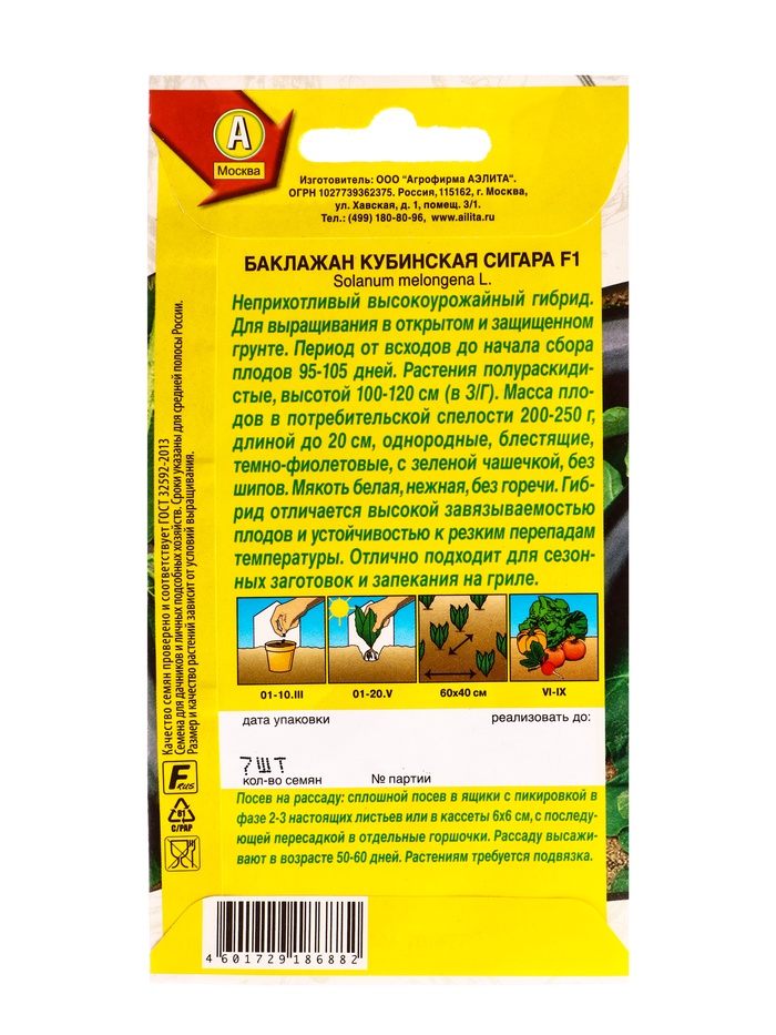 Семена Баклажан Кубинская сигара F1 Мир высокого урожая, Ц/П,7 шт.