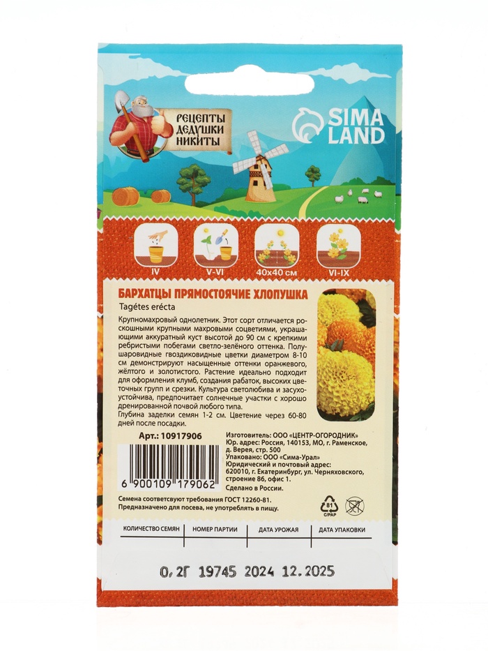 Габариты: 15 x 8 x 0,2 Страна: Россия В боксе: 3100 шт Состав: Семена Материалы: семена Фасовка: по 10 шт Индивидуальная упаковка: Без упаковки Габариты товара: 15 см × 7 см × 1 см Сертификат: Не подлежит сертификации Цвет: МИКС Вегетация: Однолетники Вид: Бархатцы Посев на рассаду: Апрель Посев (посадка) в грунт: Май, Июнь Цветение период: Июнь, Июль, Август, Сентябрь Место выращивания: Открытый грунт, Подоконник, балкон Сухоцвет: Нет Махровые: Да Высота растений: 60-100 см По форме куста: Кустовая Назначение: Для создания цветников, клумбы Отношение к свету: Светолюбивые Разновидность: Цветущее Нуждаются ли в стратификации: Нет Комментарии к товару