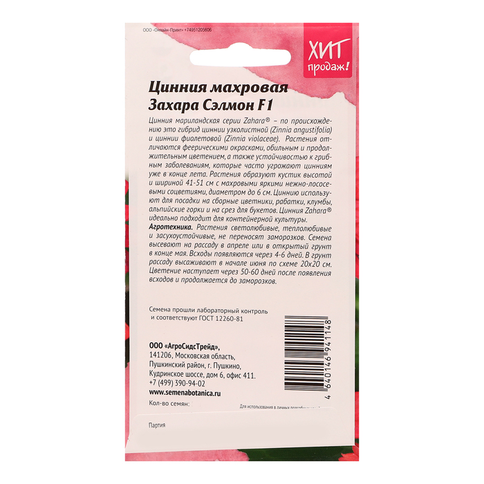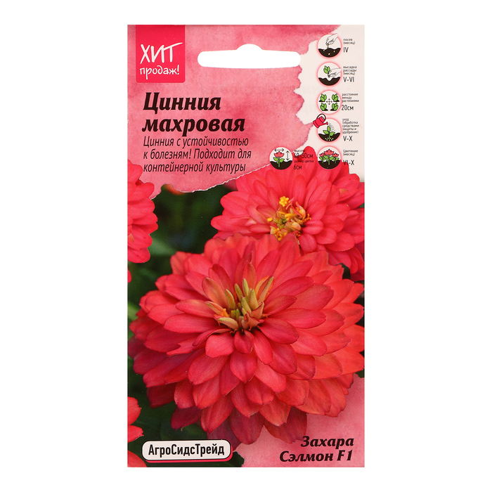Габариты: 15 x 8 x 0,2 Страна: Чили В боксе: 100 шт Состав: Семена Материалы: семена Фасовка: по 10 шт Индивидуальная упаковка: Без упаковки Сертификат: Не подлежит сертификации Цвет: Розовый Вегетация: Однолетники Вид: Цинния Место выращивания: Открытый грунт Сухоцвет: Нет Махровые: Да По форме куста: Кустовая Назначение: Для создания цветников, клумбы, Для балкона, веранды Отношение к свету: Светолюбивые Разновидность: Цветущее Цинния мэрилендская серии Zahara® -по происхождению это гибрид циннии узколистной(Zinniaangustifolia)и циннии фиолетовой(Zinniaviolaceae). Растения отличаются феерическими окрасками, обильным и продолжительным цветением, а также устойчивостью к грибным заболеваниям, которые часто угрожают цинниям уже в конце лета. Растения образуют кустик высотой и шириной 41-51 см с махровыми яркими нежно-лососёвыми соцветиями, диаметром до 6 см. Циннию используют для посадки на сборные цветники, рабатки, клумбы, альпийские горки и на срез для букетов. Цинния Zahara® идеально подходит для контейнерной культуры. Агротехника: Растения светолюбивые, теплолюбивые и засухоустойчивые, не переносят заморозки. Семена высевают на рассаду в апреле или в открытый грунт в конце мая. Всходы появляются через 4 - 6 дней. В грунт рассаду высаживают в начале июня по схеме 20x20 см. Цветение наступает через 50-60 дней после появления всходов и продолжается до заморозков. Штрих-код - Комментарии к товару