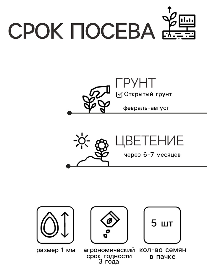 Габариты: 15 x 8 x 0,2 Страна: Россия В боксе: 100 шт Состав: Семена Материалы: семена Фасовка: по 10 шт Индивидуальная упаковка: Без упаковки Сертификат: Не подлежит сертификации Цвет: Жёлтый Вегетация: Многолетники Вид: Прочие, Эустома (Лизиантус) Тип: Уличные Посев на рассаду: Январь, Декабрь, Февраль Посев (посадка) в грунт: Июнь, Июль Цветение период: Сентябрь, Июнь, Июль, Август Место выращивания: Открытый грунт Сухоцвет: Нет Махровые: Нет Высота растений: 60-100 см По форме куста: Кустовая Назначение: Для создания цветников, клумбы, Для создания букетов Отношение к свету: Светолюбивые Разновидность: Цветущее Нуждаются ли в стратификации: Нет Семена цветов «Эустома Эхо Йеллоу», жёлтая, драже, 5 шт. — многолетнее растение, выращиваемое как комнатное и однолетнее. Нежные жёлтые махровые цветки, похожие на розы, продолжительно сохраняют декоративность. Требуется лёгкая почва. В грунт добавьте песок, торф и толчёную кору или субстрат для орхидей. Для выращивания желательна прохлада, оптимальная температура воздуха: 18–22 °С. Требуется светлое местоположение, но от прямых солнечных лучей необходимо притенять. «Эхо F1» — цветы с длинными цветоносами, пригодными для срезки и составления букетов. Комментарии к товару