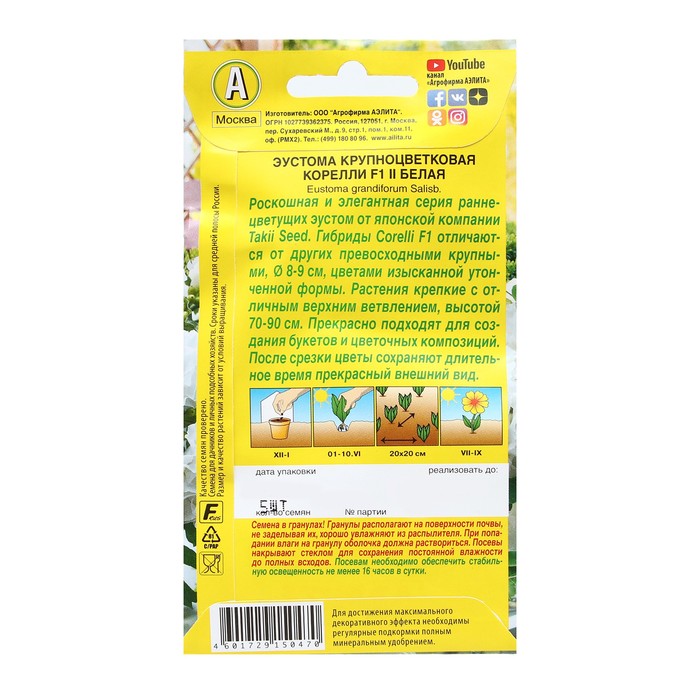 Роскошная и элегантная серия раннецветущих эустом от японской компании Takii Seed. Гибриды Corelli F1 отличаются от других превосходными крупными, 8-9 см, цветами изысканной утонченной формы. Растения крепкие с отличным верхним ветвлением, высотой 70-90 см. Прекрасно подходят для создания букетов и цветочных композиций. После срезки цветы сохраняют длительное время прекрасный внешний вид.