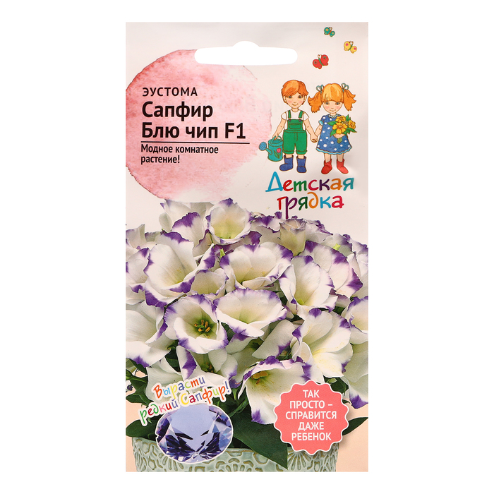 Специальная серия низкорослой эустомы селекции PanAmerican Seed. Отличается компактной формой кустика – 13-15см высотой и 10-20см шириной в зависимости от объёма кашпо и субстрата. Крупные цветки удивительной двухцветной окраски, серия отличается обильным и продолжительным периодом цветения. Не требует прищипки. В период цветения растение усыпано большим количеством махровых цветов, до 7см в диаметре. Отличается мощной корневой системой, позволяющей растению отлично развиваться и продолжительно цвести. Очень эффектное растение, как для сада, так и для дома. В доме эустома может жить 2-3 года, в открытом грунте её выращивают как однолетнее растение. Предпочитает полутень, не переносит сквозняков. Агротехника: Семена покрыты оболочкой! Эустома (лизиантус) – однолетнее, теплолюбивое растение, предпочитает хорошо окультуренные почвы, регулярные поливы и опрыскивания. Посев семян на рассаду проводят с декабря по апрель. Семена мелкие, их раскладывают по поверхности хорошо увлажненного субстрата, прижимают и накрывают стеклом. Для прорастания семян необходимо хорошее освещение и температура 18-22˚С. Полив проводят из опрыскивателя. Всходы появляются через 10-15 дней. После появления 2-3-го настоящего листа сеянцы пикируют. В фазе 6-8 листа для лучшего кущения растения прищипывают. Когда минует угроза заморозков, рассаду высаживают в открытый грунт по схеме 30×30 см или в отдельные горшки. Цветение наступает через 15-20 недель. Уход заключается в регулярных поливах (не допускать пересыхания почвы), опрыскиваниях и еженедельных подкормах. Срезку проводят, когда на стебле открылось 2-3 цветка. Штрихкод -