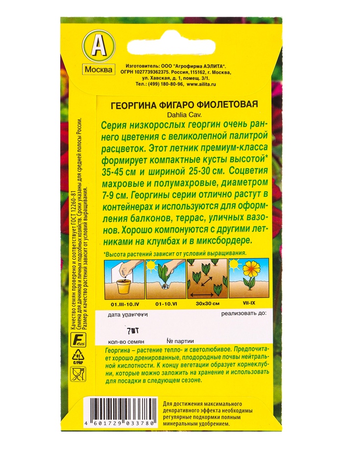 Семена цветов Георгина Фигаро махровая фиолетовая , Ц/П,7 шт.