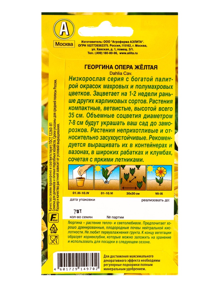 Семена цветов Георгина Опера желтая , Ц/П,7 шт.