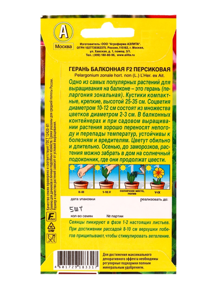 Семена цветов Герань Балконная персиковая F2 Мн Цветущий балкон, Ц/П,5 шт.