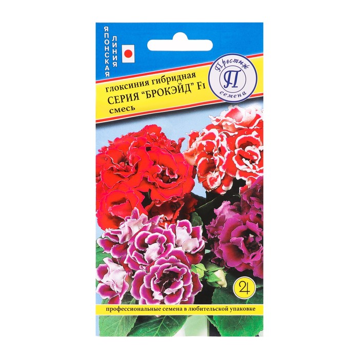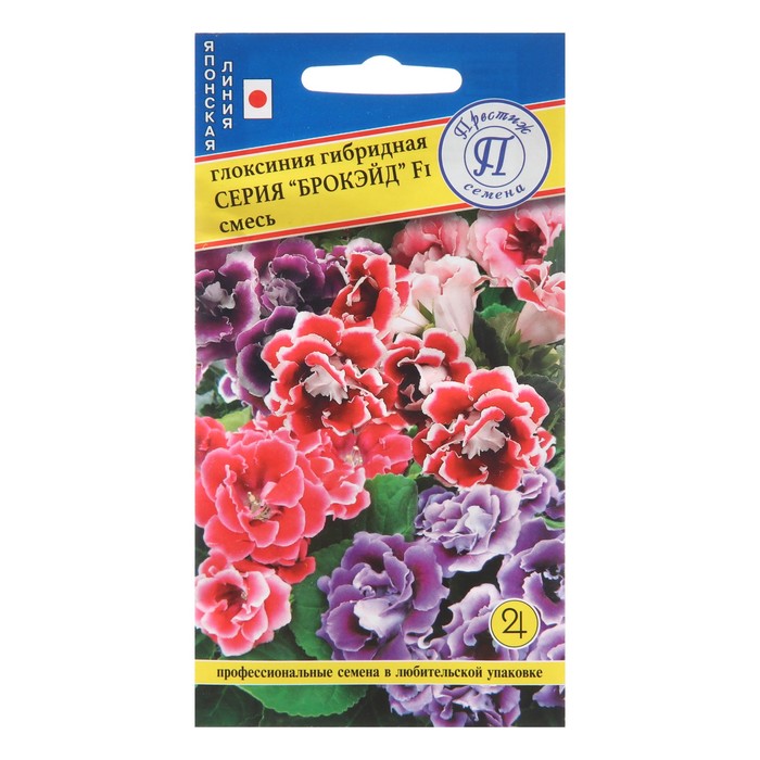 Глоксиния гибридная серии «Брокэйд» - это 100% махровый цветок. Низкорослое – 15-20 см высотой, компактное растение с маленькими листьями. Рекомендуется для выращивания в горшках 10-12 см в диаметре. Полив постоянный, обильный, избегая попадания воды на листья и цветки, лучше применять полив в поддон. Почвенная смесь: листовая, торфяная земля, сфагнум, песок в отношении 1:1:1:1. После цветения у растения наступает период покоя. Посев производят в январе-феврале, землей семена не присыпают, для поддержания постоянной влажности накрывают стеклом или пленкой. При температуре 18-20 °С всходы появляются через 14-20 дней. Через месяц сеянцы пикируют, а затем пересаживают в горшки. Растения, полученные из семян, зацветают через 6-7 месяцев.