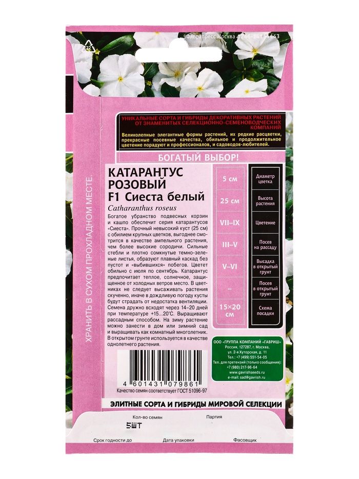 Производитель: Гавриш Габариты: 15 x 8 x 0,1 Страна: Россия В боксе: 200 шт Состав: Семена Материалы: семена Фасовка: по 10 шт Индивидуальная упаковка: Без упаковки Сертификат: Не подлежит сертификации Цвет: Белый Вегетация: Многолетники Вид: Катарантус Посев на рассаду: Февраль, Март Посев (посадка) в грунт: Май, Июнь Цветение период: Октябрь, Август, Июнь, Июль, Сентябрь Место выращивания: Универсальный Сухоцвет: Нет Махровые: Нет Высота растений: 30-60 см По форме куста: Кустовая Назначение: Для создания цветников, клумбы Отношение к свету: Светолюбивые Нуждаются ли в стратификации: Нет