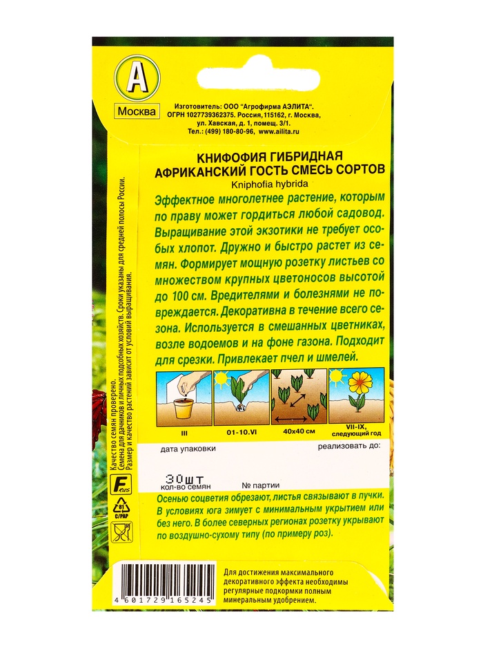 Семена цветов Книфофия Африканский гость, смесь сортов Мн, Ц/П,30 шт.