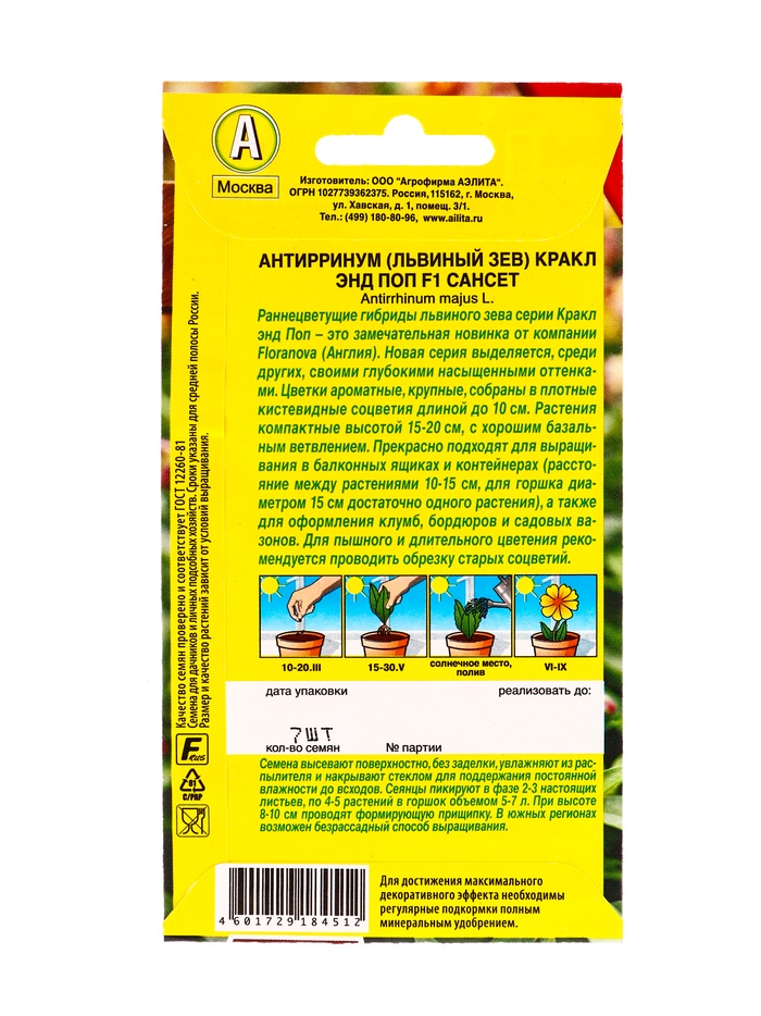 Семена цветов Львиный зев Кракл энд поп F1 сансет С. Floranova Цветущий балкон, Ц/П,7 шт.