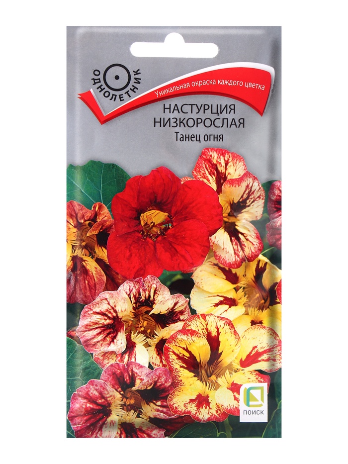 Цветочные семена «Настурция Танец огня» — это отличный выбор для создания живописных цветников и клумб. Цветущее разноцветное растение станет украшением вашего сада в летний период. Оно относится к однолетникам, поэтому будет радовать своим великолепием один сезон.