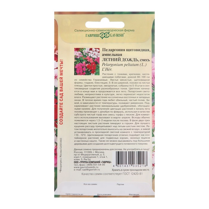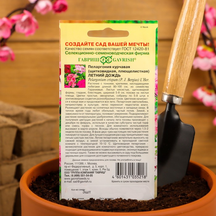 Пеларгония светолюбива, неприхотлива в культуре, легко переносит недостаток влаги. Размещают растение на солнечных восточных и западных окнах. В теплое время года любит обильный, частый полив. Зимой, в зависимости от температуры, поливают умереннее. Подкармливают растение минеральными удобрениями, обогащенными калием. Для получения цветущих растений к началу лета посевы производят с декабря по февраль, используя в качестве субстрата чистый торф или смесь торфа с песком. Для комнатного использования высевают в марте-апреле. Всходы обычно появляются через 1,5-2 недели после посева. В фазе двух-трех настоящих листьев растения пикируют в горшки. Для лучшего кущения рассаду прищипывают над пятым - шестым листом. Летом пеларгонию желательно выносить на свежий воздух, а зимой устанавливать в прохладной светлой комнате с температурой 10-12 Градусов Цельсия.