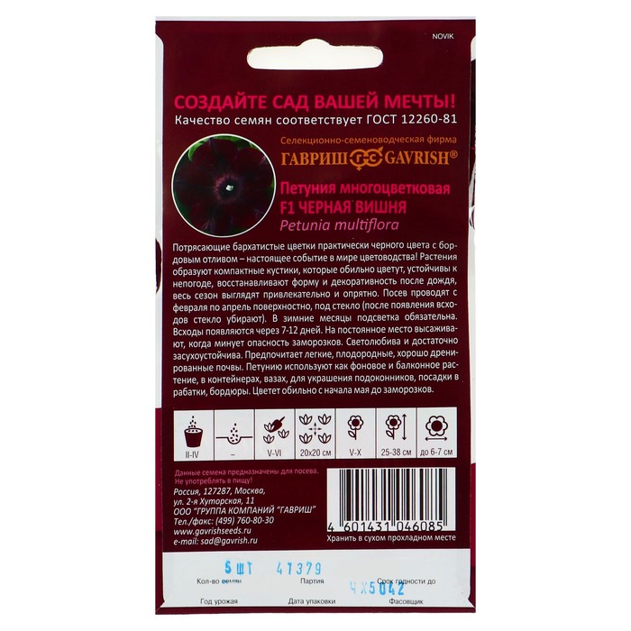 Потрясающие бархатистые цветки практически черного цвета с бордовым отливом — настоящее событие в мире цветоводства! Растения образуют компактные кустики, которые обильно цветут, устойчивы к непогоде, восстанавливают форму и декоративность после дождя, весь сезон выглядят привлекательно и опрятно. Посев проводят с февраля по апрель, поверхностно, под стекло (после появления всходов стекло убирают). В зимние месяцы подстветка обязательна. Всходы появляются через 7-12 дней. На постоянное место высаживают, когда минует опасность заморозков. Светолюбива и достаточно засухоустойчива. Предпочитает легкие, плодородные, хорошо дренированные почвы. Петуния используется как фоновое и балконное растение, в контейнерах, вазах, для украшения подоконников, для посадки в рабатки, бордюры. Цветет обильно с начала мая до заморозков.