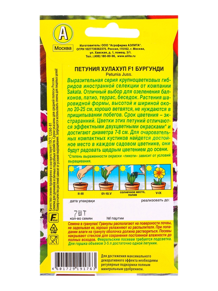 Семена цветов Петуния Хулахуп F1 бургунди (драже) С. Sakata Цветущий балкон, Ц/П,7 шт.