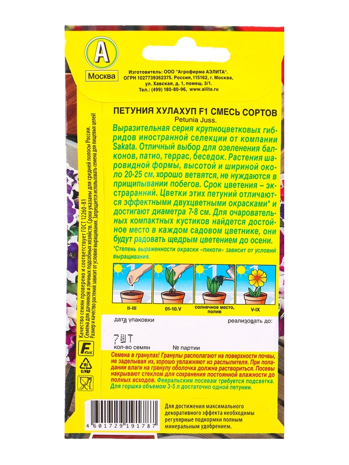 Семена цветов Петуния Хулахуп F1, смесь сортов (драже) С. Sakata Цветущий балкон, Ц/П,7 шт. 1094584