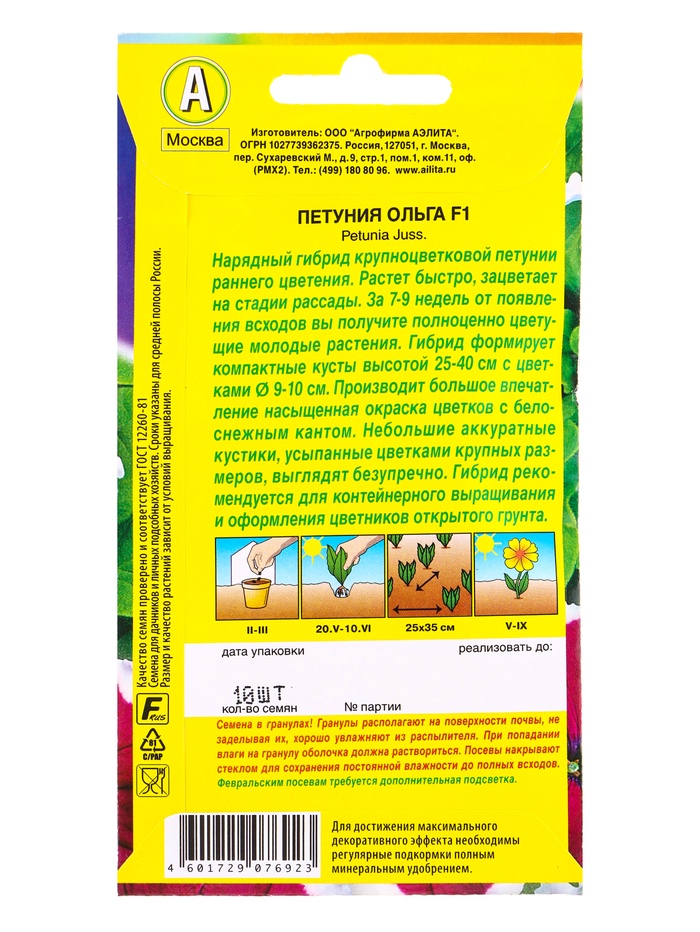 Семена цветов Петуния Ольга F1 крупноцветковая (драже в пробирке), Ц/П,10 шт.