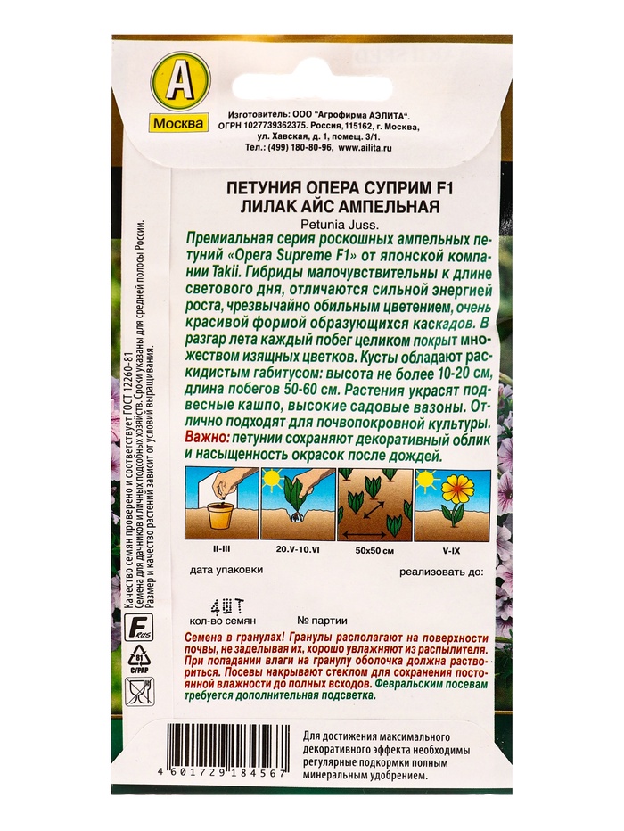 Производитель: Агрофирма АЭЛИТА Габариты: 15 x 8 x 0,3 Страна: Чили В боксе: 50 шт Состав: См. на упаковке Материалы: см. на упаковке Фасовка: по 10 шт Индивидуальная упаковка: Без упаковки Сертификат: Не подлежит сертификации Цвет: Розовый Вегетация: Однолетники Вид: Петуния Посев на рассаду: Март, Февраль Посев (посадка) в грунт: Май, Июнь Цветение период: Август, Сентябрь, Июль, Июнь, Май Место выращивания: Открытый грунт Сухоцвет: Нет Махровые: Нет Высота растений: До 30 см По форме куста: Кустовая Назначение: Для балкона, веранды, Для создания цветников, клумбы Отношение к свету: Светолюбивые Нуждаются ли в стратификации: Нет