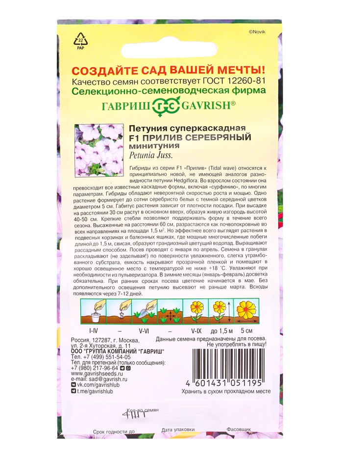 Семена цветов Петуния Прилив Серебряный F1 (Минитуния) суперкаскад. 4 шт. гранул. проб. серия Элитна