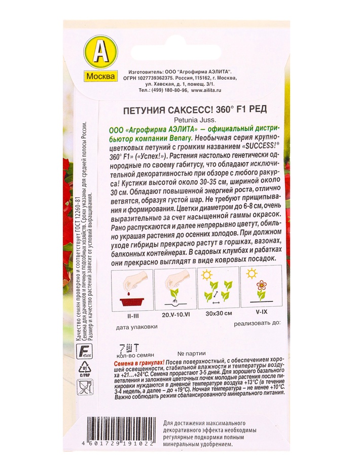 Семена цветов Петуния САКСЕСС! 360° F1 Ред (драже в пробирке) Спецсерия Benary, Ц/П,7 шт.